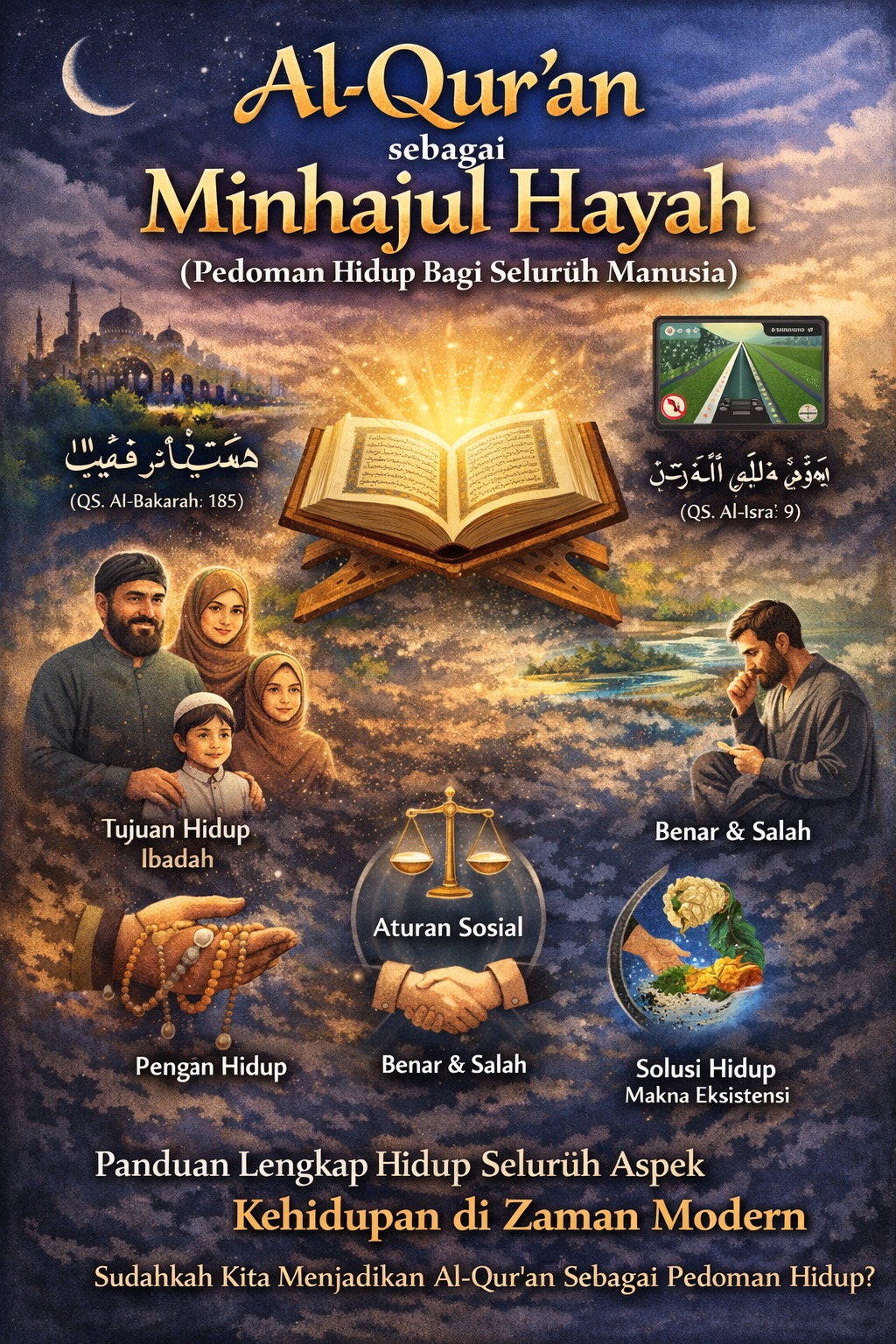 Al-Qur’an sebagai Minhajul Hayah (Pedoman Hidup) bagi Seluruh Manusia   Al-Qur’an bukan sekadar kitab suci untuk dibaca saat ibadah, tetapi merupakan Minhajul Hayah—pedoman hidup yang mengatur seluruh aspek kehidupan manusia: akidah, ibadah, akhlak, sosial, ekonomi, hingga kepemimpinan. Ia hadir bukan hanya untuk satu kaum atau zaman tertentu, melainkan untuk seluruh umat manusia sampai akhir zaman. … Baca Selengkapnya